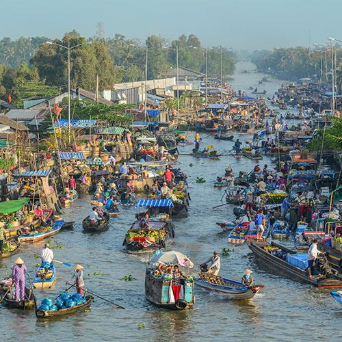 Can Tho is the main city of the Mekong Delta, the nine dragon river delta, where the Mekong River empties into the South China Sea. As the political, economic, cultural and transportation center of the Mekong Delta, it's a buzzing town with a lively waterfront lined with sculpted gardens, an appealing blend of narrow back streets and wide boulevards, and perhaps the greatest concentration of foreigners in the delta. It's also the perfect base for nearby floating markets, the major draw for tourists who come here to boat along the many canals and rivers leading out of town.