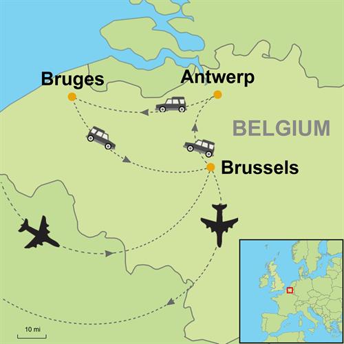 Complete portrait of Belgian Flanders, made stress-free by our Chauffeured Collection!. From the cosmopolitan energy of Brussels (blend of Art Deco Taverns, Flemish Art, towering Gothic Cathedrals and quaint guild houses) and the diamond district of Antwerp (one of the world’s major seaports and fine arts) to the preserved beauty of Bruges (medieval town, famous for its lace making and enchanting canals)...the experience is uniquely enhanced by stops to historic cities: Ghent
