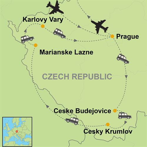 A Grand Bohemia Circuit Region along Czech Republic!. Experience Prague (architecture, towering churches, old bridges and romantic alleys) with South Bohemia; discovering Ceske Budejovice (famous baroques buildings and beer lovers destinations) and Cesky Krumlov (one of Unesco`s best-preserved medieval cities, with numerous cobblestone streets, colorful houses and a castle), plus The Spa West Route; combining Marianske Lazne (UNESCO World Heritage Spa Town with neo-classical architecture, extensive parks, romantic colonnades) and Karlovy Vary (a historic spa town hot mineral springs, elegant spa architecture, and Belle Epoque buildings). Along your way, we provide a seamless, door-to-door experience service with stops at: the Baroque library of Tepla Monastery, the -Czech Versailles- at Dobris Castle, and the dramatic limestone cliffs of the -Czech Grand Canyon- at Velka Amerika.