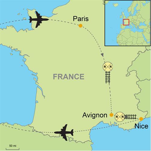 - Flight into Paris and out of Nice