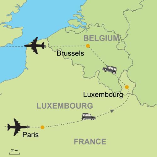 Take a once in a lifetime adventuring journeying through France, Belgium and Luxembourg . Start in Paris (The city of lights with impressive monuments, museums, culture and gastronomy) and then Luxembourg (a delicate mix of old and new; cobbled streets and ornate windows meet the newest steel and glass office buildings elegantly) and lastly, Brussels (a city blending modern buildings along traditional cobblestone streets, museums and incredible food). Travel between cities by transfer with stops in Metz, Abbaye de Villers and Citadelle Namur.