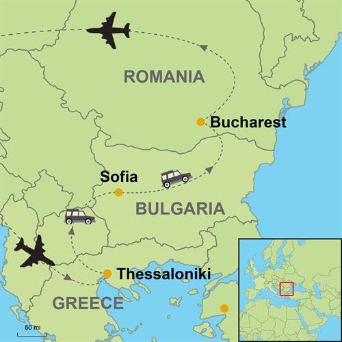• Flight into Thessaloniki and out of Bucharest