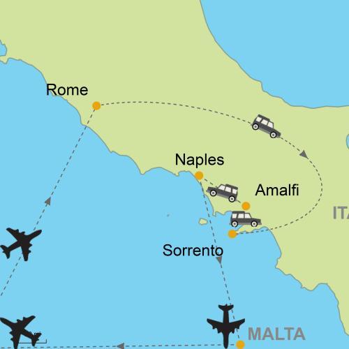 - Flight into Rome and out of Naples