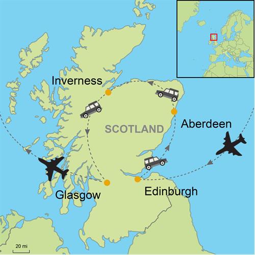 - Flight into Edinburgh and out of Glasgow