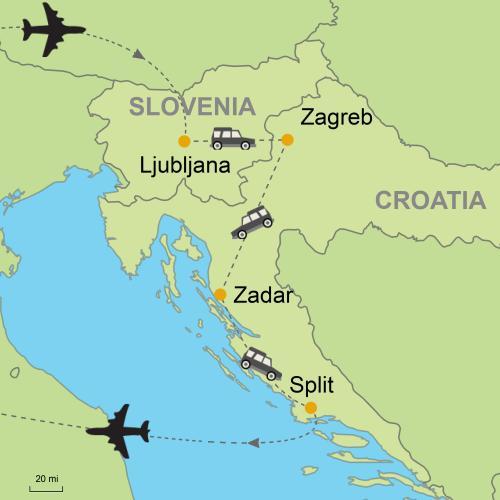 - Flight into Ljubljana and out of Split