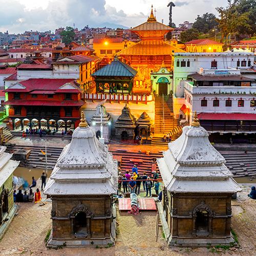 Visit Pashupatinath Temple, the oldest temple in Nepal. A UNESCO World Heritage Site made up of over 500 temples, pagodas, ashrams, and shrines. It is considered one of the most sacred Hindu temples in the country. It is dedicated to Lord Shiva, an intense place to visit. The large temple is located on the banks of the Bagmati River. It's a public, open-air cremation site where the last rites of Hindus are performed on raised platforms along the river around sunset (not an experience for the fainthearted).