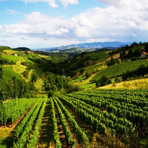 To the north of Lyon, Beaujolais produces distinguished wines, while the picturesque hilltop village of Pérouges is a persisting film location. Downstream, the Rhône forges past the Roman city of Vienne and the centuries-old Côtes du Rhône vineyards, where the sunny vistas of fruit orchards, lavender fields and the distant Alps are located. Just south past Valence and the nougat capital of Montélimar, eventually reaching the craggy Gorges de l'Ardèche, where the Ardèche River opens to the Languedoc and Provence.