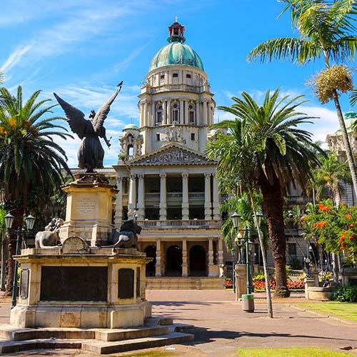 Check out some of the interesting historic landmarks to visit in Durban the City Hall, which was built in 1910 and is a replica of Belfast City Hall. The colonial statues of Francis Farewell Square, the post office built in 1885, the Clock of Vasco da Gama, the Emmanuel Cathedral built in 1904, the Salisbury House built in 1925, and the Dick King Statue.