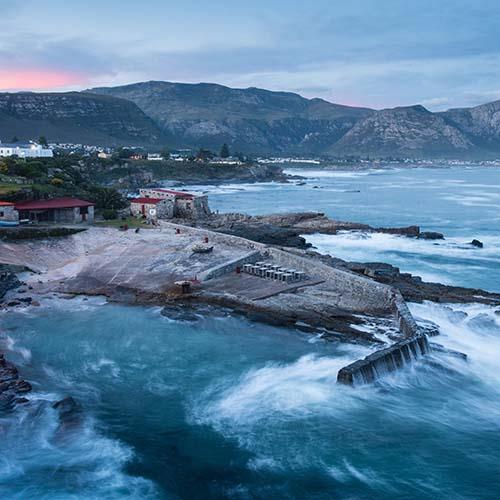 Beautiful Hermanus boasts breathtaking scenery with its rugged coastline, embraced by majestic mountains and surrounded by verdant vineyards. The quaint fisherman’s village has a rich fishing history which can be seen in the Old Harbour Museum with its impressive whale skeleton exhibit. There are plenty of activities to choose from in Hermanus whether it be boating, fishing, hiking, or horseback riding the possibilities are endless. Hermanus is home to a list of never-ending unique attractions to keep visitors entertained; go cage diving with great white sharks, go paragliding, whale watching, kayaking, or take a sunset cruise on the spectacular waters.