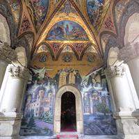 The Metropolitan Cathedral of Iasi is the largest Orthodox church in Romania and the seat of the Romanian Orthodox Archbishop of Iasi and the Metropolitan of Moldavia and Bukovina. The church features a Renaissance style with Baroque elements and Gheorghe Tattarescu paintings and contains the relics of Saint Parascheva. The church dates back to the early 1800s and features Bavarian stained glass windows and the original bells still ring in the northeast spire with an inscription stating it was made from four cannons that the Turkish army captured in the War of 1828-1829.