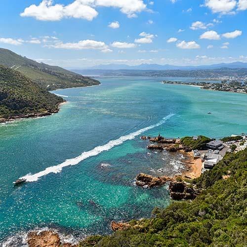 The charming coastal town of Knysna is nestled between the <>Outeniqua Mountains and the magnificent Indian Ocean, two of its biggest characteristics are the sparkling Knysna Lagoon and The Knysna Heads. It is a great base for exploring the scenic surroundings and is the perfect compromise for beach lovers and outdoor enthusiasts. Knysna is often referred to as the “Jewel - Pearl of the Garden Route” and the culinary capital of oysters, the town is very well known for its oysters and wooden furniture. The landscapes in this region are verdant green thanks to its Mediterranean Maritime climate with rain falling throughout the year. Knysna is mantled by indigenous forests that extend into the Tsitsikamma National Park area.