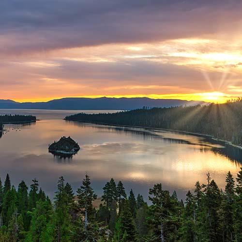 Emerald Bay State Park is located on the west shore of Lake Tahoe, a popular place to visit with attractions like the Eagle Lake Trail, that offers magnificent mountain views. The park is filled with some fantastic trails, many of Lake Tahoe’s trails lead to Emerland Bay. It is a designated National Natural Landmark and Underwater State Park due to its outstanding natural beauty. Emerald Bay Beach features a wide-open sandy beach area with a pier, and picnic tables. Kayaks and paddleboards can be rented from the beach and it's possible to paddle out to Fannette Island, as well as numerous secluded coves dotted around the bay. The southwest shoreline is surrounded by towering trees, it is known for its monumental granite cliffs and stunning vistas.