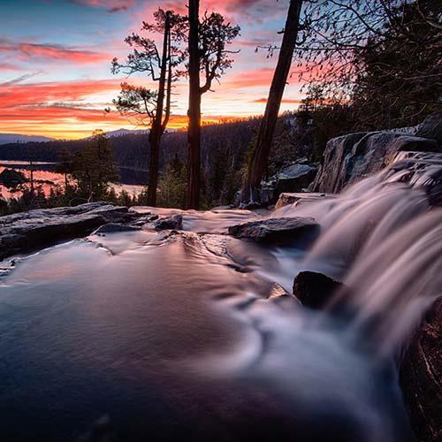 Lower Eagle Falls are a set of waterfalls that cascade down into the creek that runs into Emerald Bay. It is a 140-foot waterfall that can be reached via a 2.5-mile out-and-back trail near South Lake Tahoe. The Lower Eagle Falls Trail begins at the junction with the Rubicon Trail just north of the bridge across Eagle Creek. It quickly turns into stairs and leads to a small platform at the bottom of the spectacular Lower Eagle Falls. The area is extremely popular for hiking and the best times to visit for a hike are April through October. Lower Eagle Falls is easily accessible, the Eagle Falls Picnic Area and Trailhead are located here and visitors can enjoy the beauty of the falls and unparalleled views.