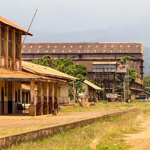 The Old Town Railway Station in Moshi was built during the German colonial rule. The station is no longer in use and appears abandoned, there are old wagons no longer in use or sit somewhere and marvel at Mount Kilimanjaro. The old booking office has been turned into a bar where visitors can enjoy a cold bottle of Kilimanjaro beer after exploring the old station.