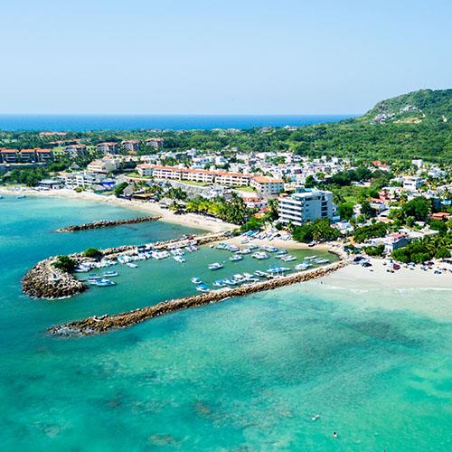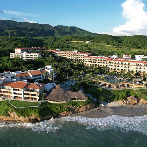 The peninsula is home to two Jack Nicklaus-designed golf courses, upscale beachfront dining, and access to the protected Marietas Islands, where snorkelers explore coral beds and volcanic sea caves.