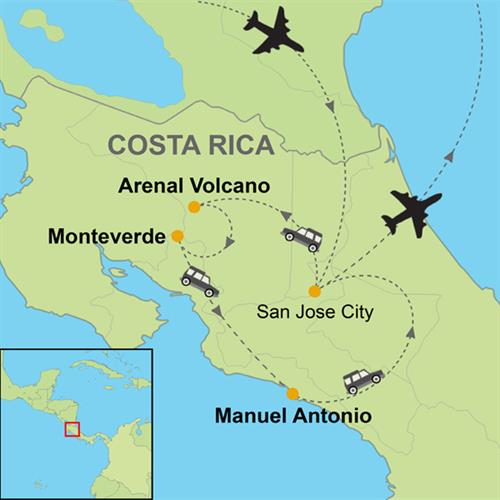 Embark on a thrilling outdoor adventure in Costa Rica. Start in Arenal Volcano (one of the most active stratovolcanoes), after that head to Monteverde (one of Costa Rica's top tourist destinations; with an extensive reserve of lush, verdant cloud forests). Finally, enjoy Manuel Antonio (Quepos) (home to a namesake national Park in Quepos). From Hiking, Ziplining, Rain Forest Night Walk, Canopy and White Water Rafting Class... all for nature lovers!.