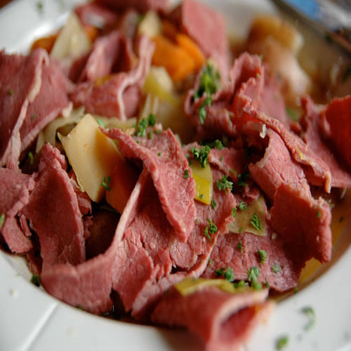 -Beef and Guinness stew: A more seasoned version on the "beef and Guinness" theme, Guinness draught is used in the cooking process of the beef, as are various herbs such as rosemary, thyme, and bay leaves. The stew is served on top of champ potatoes and usually the plate also includes a vegetable. Beef and Guinness dishes can be tried at many places around town, such as The Hairy Lemon (Stephen Street Lower) and The Brazen Head (20 Lower Bridge Street).