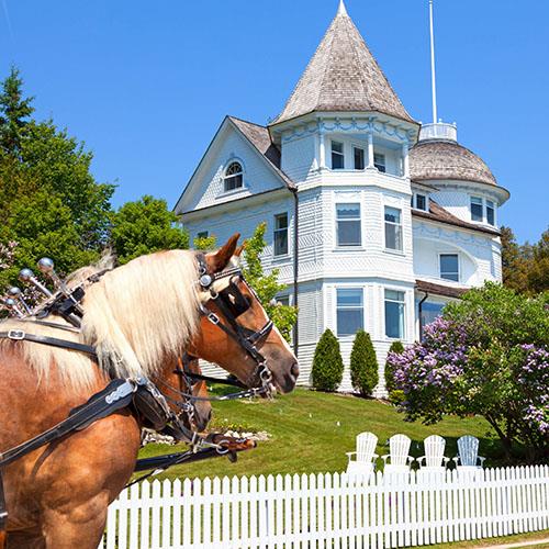 Historic Downtown Mackinac is home to several historic homes and businesses, this charming district offers a glimpse into the everyday lives of those who lived here at the height of the fur trade era of the 1820s and 30s. There are many places to visit in the downtown area including The Biddle House which has been fully restored to its state as an 1820s merchant class home, The McGuplin House is set in the same era and focuses on architecture and restoration process used to return the building to its original condition. The American Fur Company Retail Store Downtown is another popular spot where tourists can see what Mackinac’s original general store looked like, the Dr. Beaumont Museum contains exhibits about Dr. William Beaumont’s discoveries related to the digestive system, initiated by a gunshot wound sustained in the store by a customer. The Benjamin Blacksmith House provides visitors a first-hand look at another local business, this time focusing on the 1950s, you can watch the interpreters make various steel creations, and even try it yourself. Mackinac Island Carriage Tours are one of the most popular and unique ways to tour the island, in a horsedrawn carriage with the ability to hop on and hop off to experience some of the great sights along the way which include; Fort Mackinac, the Wings of Mackinac Butterfly Conservatory, and a brief stop at Arch Rock. The tour also includes admission to the Surry Hills Museum, which provides a look at the history of the island’s horse-powered vehicles. An evening carriage ride through the downtown area is particularly charming and romantic.