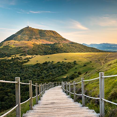 Clermont-Ferrand (commonly called Clermont), in the Auvergne Rhone Alpes region, is the capital of the Puy-de-Dôme department and the historical capital of the Auvergne. To the west, Clermont-Ferrand is overlooked by a granitic plateau on which lies the Puys chain and the Limagne fault, the largest chain of volcanoes in Europe, among which stands the most famous, the Puy de Dôme at 4,806 ft.